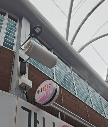 시장 군데군데에 냉풍기가 설치되어 있어서